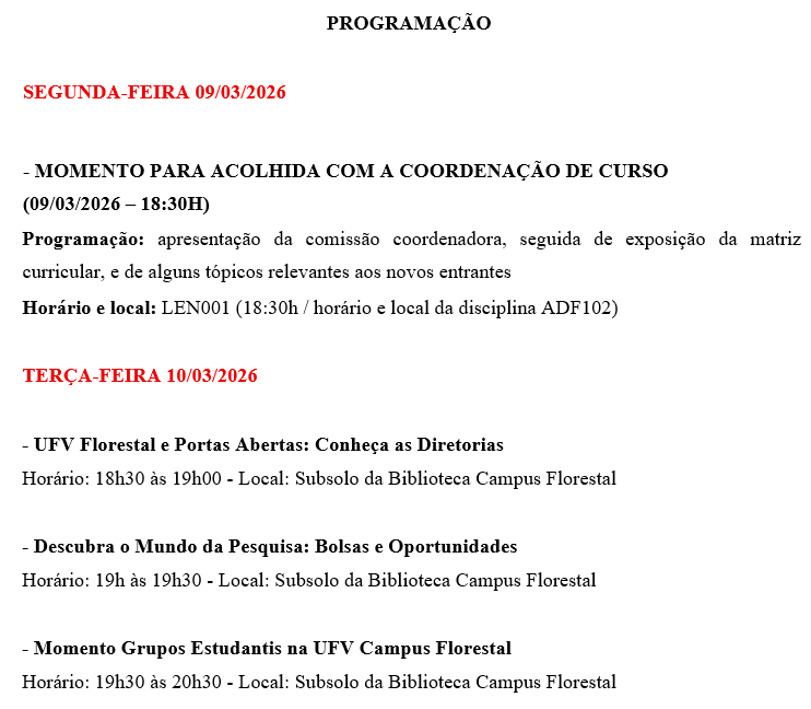 Programação Geral UFV – Integra Calouros UFV CAF